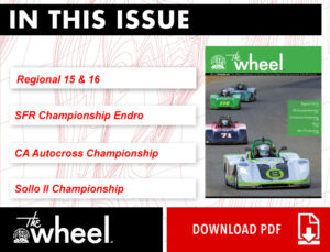 The Wheel is the monthly magazine for San Francisco Region. It covers racing, autocross, Concours, and volunteer support of Pro events. In addition, it features the most complete classified section for amateur racers on the West Coast.
